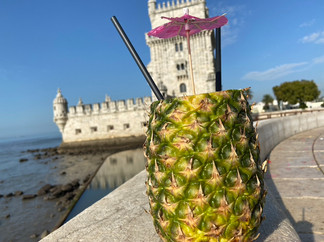 The next day was spent seeing some of the essential sites. We started out by taking the train down to the Torre de Belém, constructed in the 16th century. As we approached, we noticed a cart where a woman was serving juice in hollowed out pineapples. This seemed like a great idea, so we purchased one to drink while we marveled at the building. What we didn't account for was the fact that the pineapple wouldn't fit it any of the garbage cans... On the journey back, we encountered the impressive Monastery of Jerónimos, walked through a cute park, and finally managed to jam the pineapple into the trash.